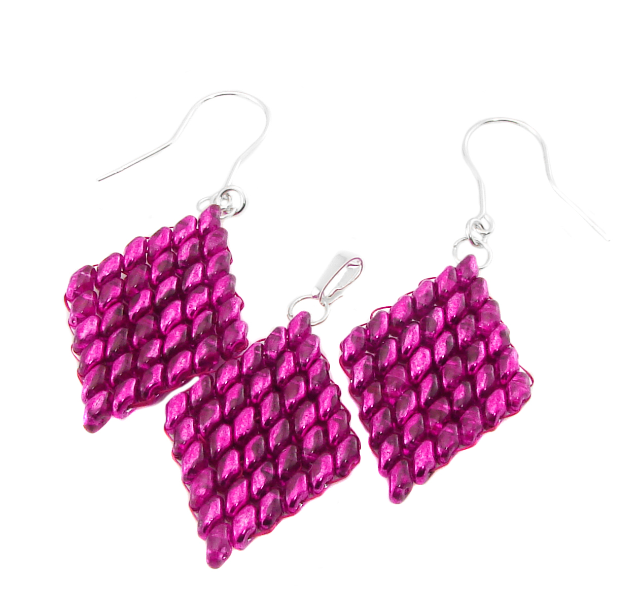 - materiał: 3,5x2cm ręcznie wykonywane romby z koralików matubo (superduo)
